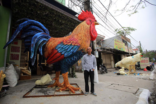 Theo tìm hiểu của PV, mô hình gia đình gà này là tác phẩm của họa sĩ Nguyễn Viết Lục (48 tuổi, Kiến An, Hải Phòng) bắt tay thực hiện từ ngày 1/1/2017 và đến nay sau 22 ngày, toàn bộ tác phẩm đã sắp được hoàn thiện.