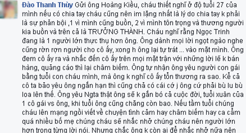 Cháu thiết nghĩ ở độ tuổi 27 của mình nếu có chia tay cháu cũng nên im lặng nhất là lý do chia tay không phải là sự phản bội.
