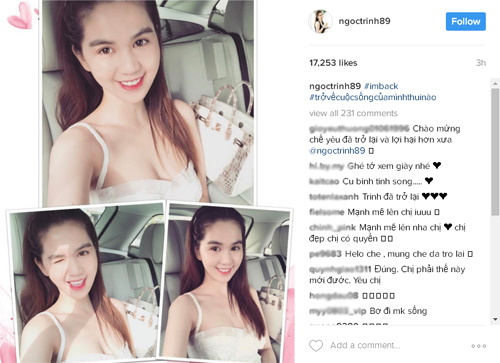 Sau nhiều ngày im lặng và khóa các tài khoản cá nhân, hiện Ngọc Trinh đã mở lại trang Instagram của mình, cô còn khoe ảnh selfie rạng rỡ trong ngày mùng 6 Tết (2/2) kèm theo hashtag: “I’m back” và “Trở về cuộc sống của mình thôi nào”.