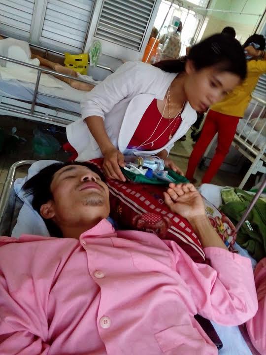 Anh Vơ Hướng nằm điều trị tại bệnh viện Chợ Rẫy sau khi bị công an huyện Tuy Đức đánh (ảnh; Facebook Tâm Nguyễn)