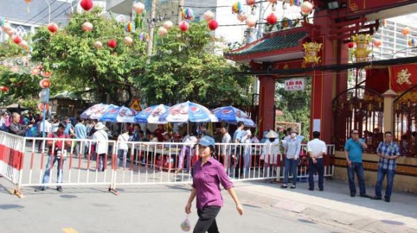 Ban tổ chức bố trí khu vực bán vé số riêng trước cổng chùa để hạn chế tình trạng chèo kéo du khách.