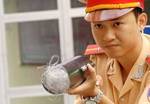Cảnh sát giao thông Thanh Hóa đã có chiêu rất độc để bắt quái xế. Họ đã dùng súng bắn lưới để bắt xe máy vi phạm. Họ cho rằng hành động như vậy là rất an toàn?.