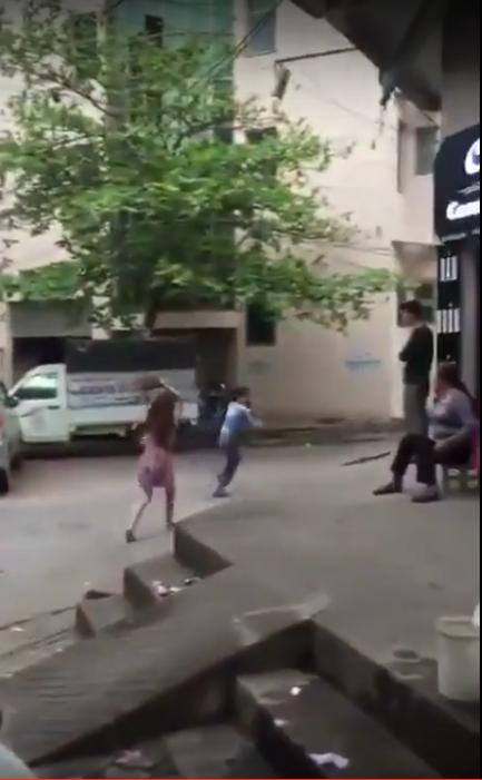 Chưa rõ nguyên nhân từ đâu dẫn tới cơ sự này nhưng người xem có thể thấy rõ cô gái trẻ đang rất tức tối trút giận về phía chàng trai với những cú tát, đánh bằng guốc… Sau đó, cô gái này còn dùng cả đá bên đường với mục tiêu là phía người bạn trai.