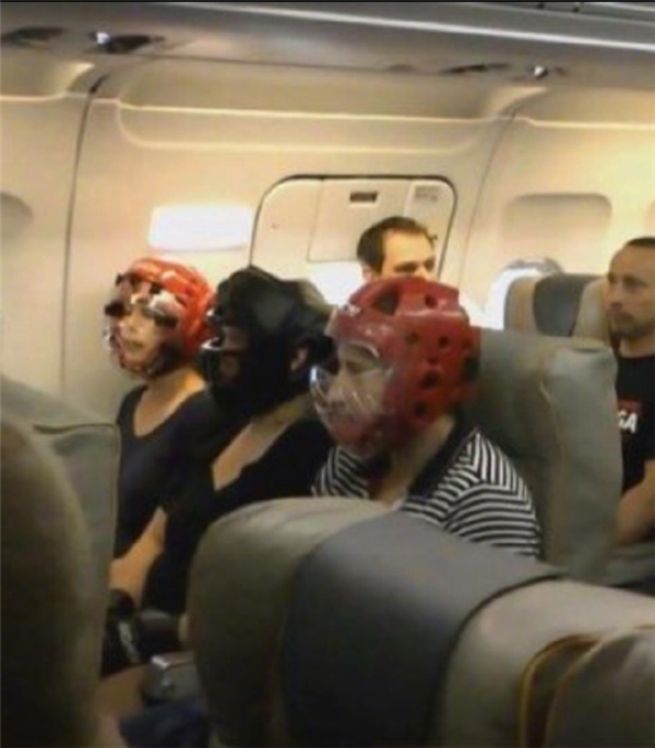 Cụ thể, loạt ảnh được cho là phát tán từ trang Weibo cá nhân của một cư dân mạng Đại lục. Anh này viết: “Hành khách trên chuyến bay của United Airlines ngày hôm nay”. Theo đó, trên chuyến bay, đa số các vị khách ai nấy đều đội mũ bảo hiểm có cả kính bảo vệ che kín gương mặt. Trong khi đó, những hành khách không có mũ để lộ gương mặt căng thẳng đầy sợ hãi.