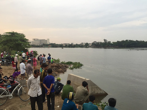 Nhận tin báo, nhiều người nhái thuộc lực lượng cứu hộ - cứu nạn Cảnh sát PCCC Tp.HCM có mặt, lặn tìm.