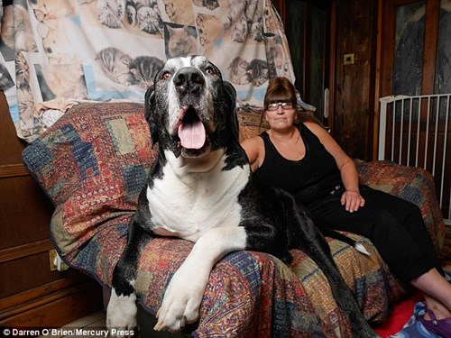 Khi mới được nhận nuôi, chú chó Yogi thuôc giống chó Great Dane chỉ nặng 0,6kg nhưng 9 năm sau, nó đã to gấp 158 lần. Chủ sở hữu của chú chó này là bà Sue Markham (57 tuổi, ở Gainsborough, Anh).