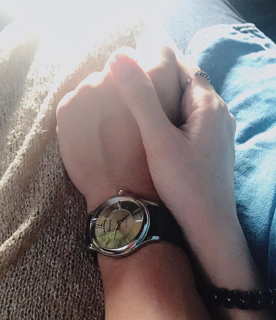 Hari Won cũng thường xuyên có mặt tại các chương tŕnh có Trấn Thành làm giám khảo hoặc MC. Trong ảnh, nữ ca sĩ người Hàn Quốc chơi điện thoại trong lúc chờ ông xă ghi h́nh gameshow 'Người bí ẩn'.