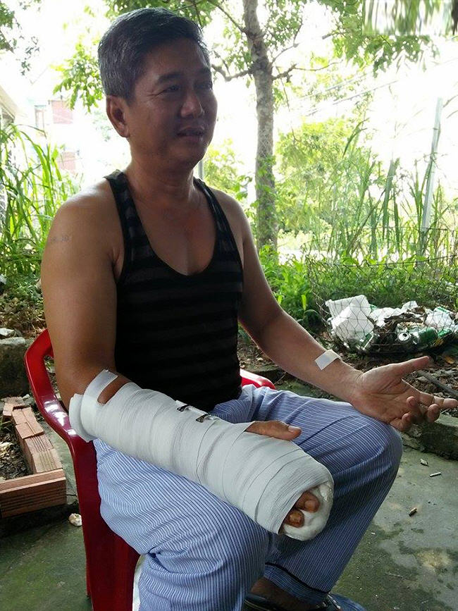 Sau đó, các nạn nhân được người dân đưa đi cấp cứu tại Bệnh viện 115. Các nạn nhận bị nhóm đối tượng này chém đứt gân tay, đứt cơ tam đầu. Trong đó, ông Vũ là người bị thương nặng nhất.