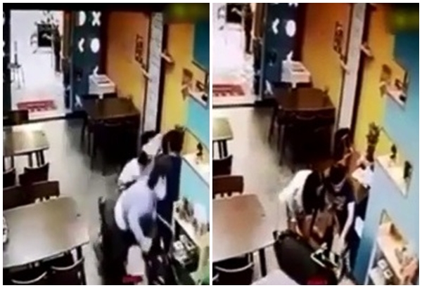 Sự việc trên xảy ra vào ngày 14/05 vừa qua tại một nhà hàng nằm ở thành phố Cao Hùng, Đài Loan, Trung Quốc và được ghi lại bởi hệ thống máy quay giám sát an ninh.