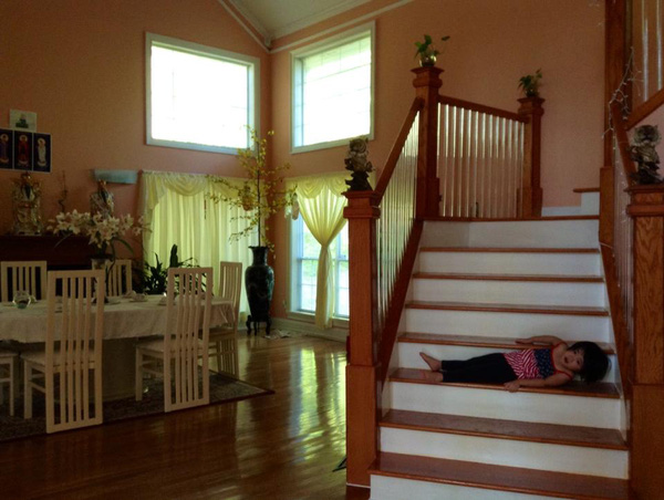 cho nó về thăm lại căn nhà 112 ô cửa sổ... chụp hình cũng cái dáng vậy, giờ nó chỉ "cả bàn tay"”.