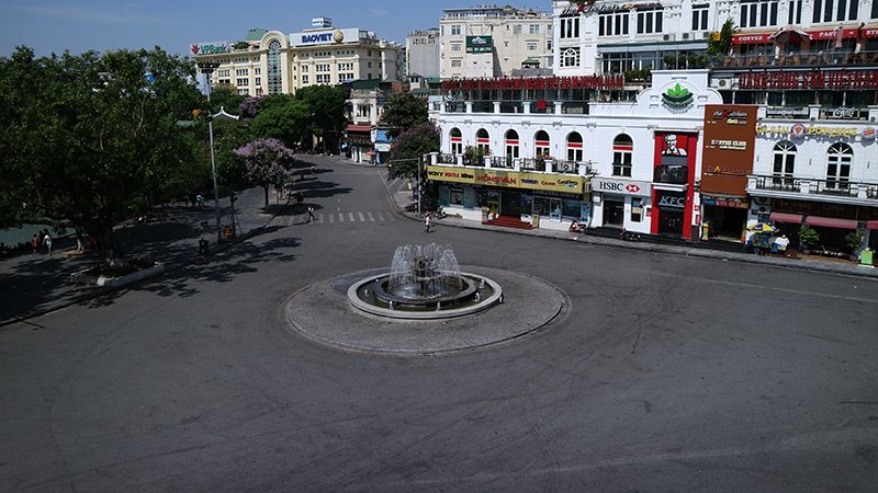 Quảng trường Đông Kinh Nghĩa Thục vắng hoe hoắt dưới tiết trời nắng như đổ lửa.