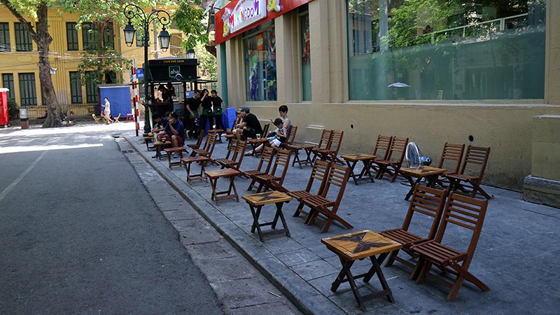 Tiệm cafe vỉa hè phố Nguyễn Xí vắng hoe.