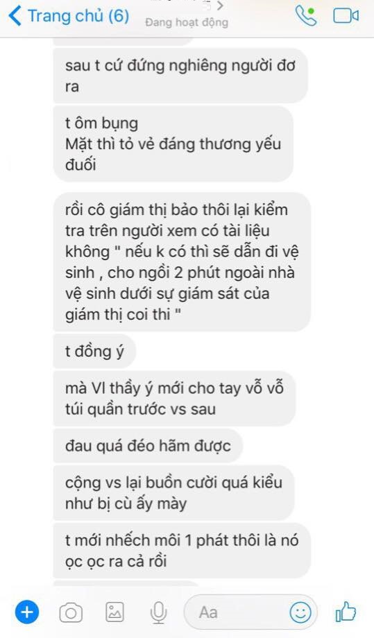 Không rõ vì bát cháo lòng buổi sáng hay do áp lực thi cử mà thí sinh này đã bước vào buổi thi với những cơn đau bụng dữ dội. Sau khi đã được giám thị đưa ra ‘giải quyết’ một lần nhưng cơn đau bụng vẫn không buông tha thí sinh tội nghiệp này. Và cuối cùng điều gì đến cũng đã đến …. Hãy cùng xem những dòng chia sẻ vừa bi vừa hài của bạn thí sinh 99 này nhé: