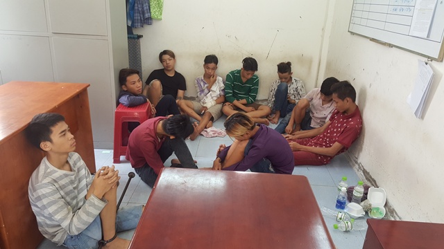 Nhóm đối tượng tại cơ quan công an. Ảnh: C.T.