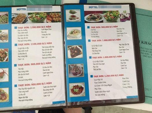 Bảng menu tại khách sạn- chị Oanh cung cấp