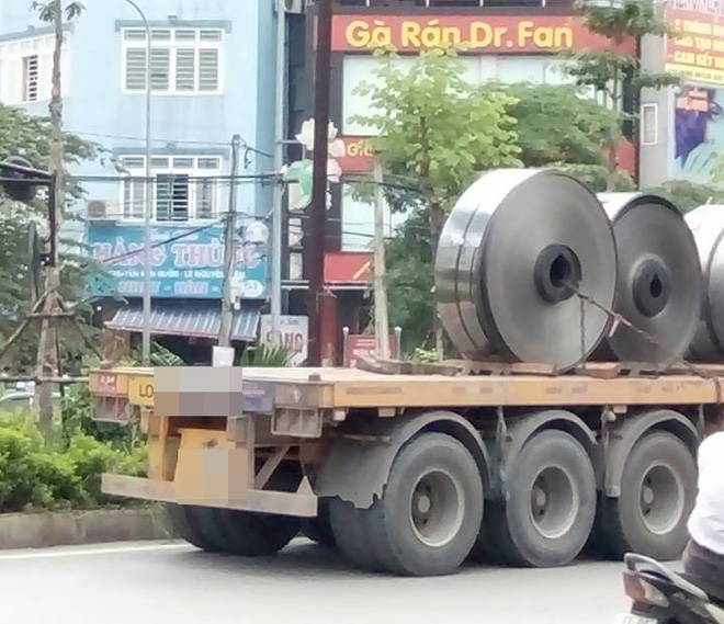 Xe container chở theo nhiều cuộn inox lưu thông trên đường. Ảnh: Otofun.