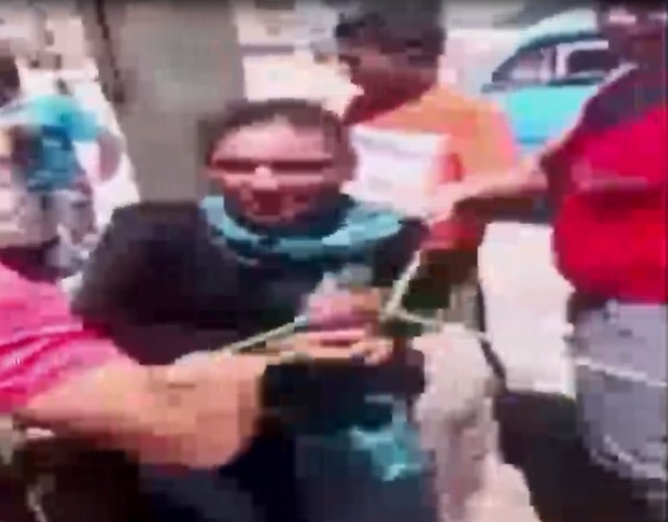 Tuy nhiên, dù cố gắng giải thích hay van xin đến đâu, nhóm người hung hăng vẫn quyết định trói chặt nạn nhân vào cột đèn giữa cái nắng gay gắt. Một số kẻ kích động còn buông lời lăng mạ cũng như dùng tay và dép đánh nhiều lần vào mặt của "đối tượng" chuyên bắt cóc trẻ em.
