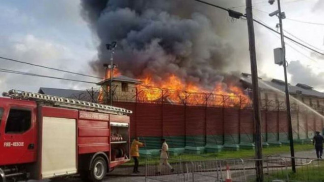 Ngọn lửa bùng cháy dữ dội tại nhà tù Camp Street. Ảnh: Loop.
