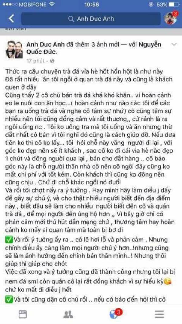 Đây như là một hồi chuông cảnh báo cho những ai cố tình làm những điều sai trái và lợi dụng mạng xã hội để trục lợi cho bản thân. Đây là hành vi không thể chấp nhận được vì nhiều hình ảnh trong clip có thể gây nghi kị cho những tập thể chủ quán bán trà đá ven đường vô cùng đàng hoàng khác. Chưa kể hành vi này đã xâm phạm đến uy tính, danh dự của những người lao động làm công việc bán trà, nước giải khát.
