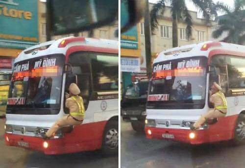 Ảnh cảnh sát bám xe buýt.