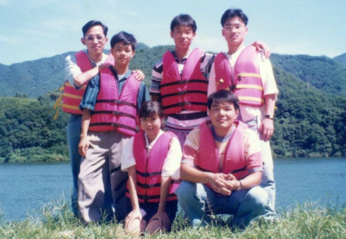 Đặng Thiếu Ngân (cô gái trong ảnh) và anh Park Ji Hoon (đeo kính đen bên trái) gặp nhau lần thứ hai vào năm 1994 ở Hàn Quốc.