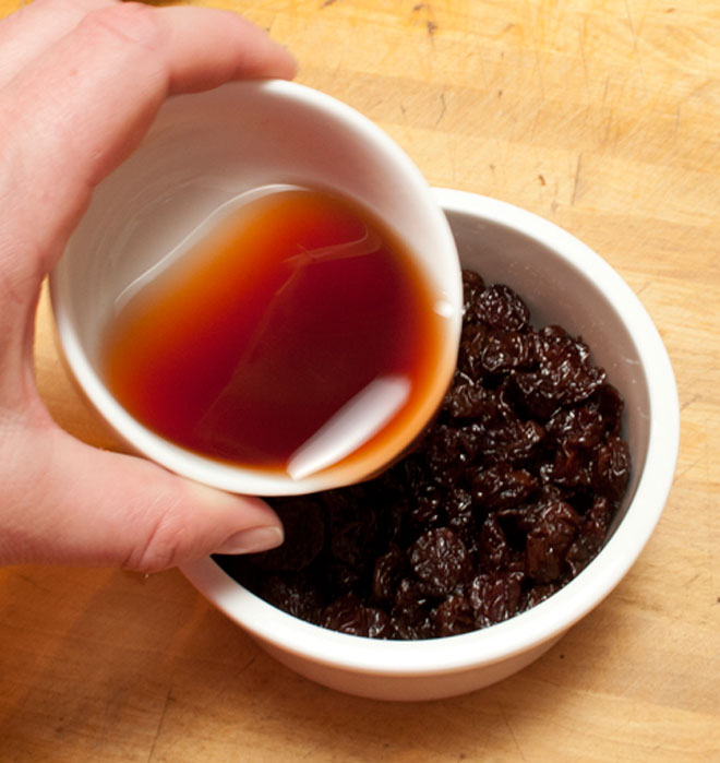 Ngâm quả anh đào khô trong rượu vang port khoảng 30 phút.