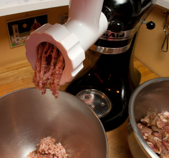 Xay hỗn hợp thịt vào một tô đã được giữ lạnh trong tủ đá.