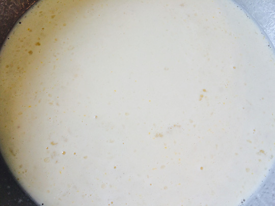 Bột và trứng pha cùng nhau