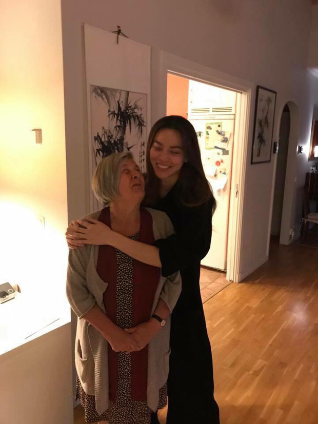 Hà Hồ tỏ ra khá thân thiết với mẹ Kim Lý, cô vòng tay ôm bà từ phía sau. Điều này càng làm dấy lên tin đồn Hồ Ngọc Hà và Kim Lý đang chính thức hẹn hò.