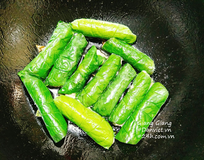 - Bước 4: Đặt chảo lên bếp cùng với khoảng 3 thìa dầu ăn, khi dầu nóng thì xếp chả lá lốt cho vào chiên tới khi thấy chả chín thì lật chả và chiên tiếp cho chả chín vàng là gắp ra đĩa có lót giấy thấm dầu.