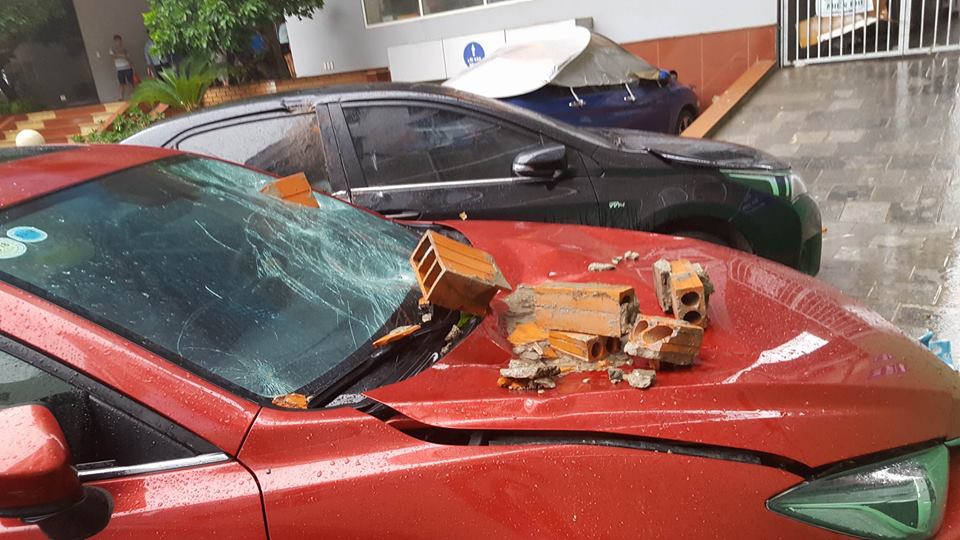 Đỗ xe trong bãi gửi của tòa nhà, chủ xe đau lòng sau 1 đêm gửi. Những viên gạch vô thưởng vô phạt từ đâu rơi trúng xe người này làm hư hỏng gần như cả chiếc xe. Tổng chi phí đi sửa lên đến gần 50 triệu khiến ai cũng xót xa.