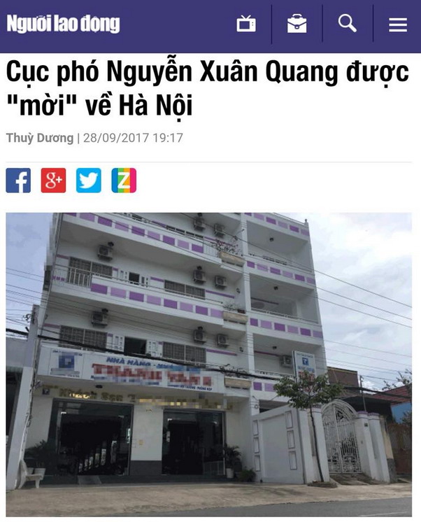 5.Thằng Cục phó về môi trường của Tổng cục môi trường ( thuộc Bộ Tài nguyên môi trường) bị mất khoản tiền cá nhân gần 400 triệu ( cỡ 20 ngàn USD) ở Khách sạn khi thừa hành công vụ thanh tra các doanh nghiệp ở Long An !