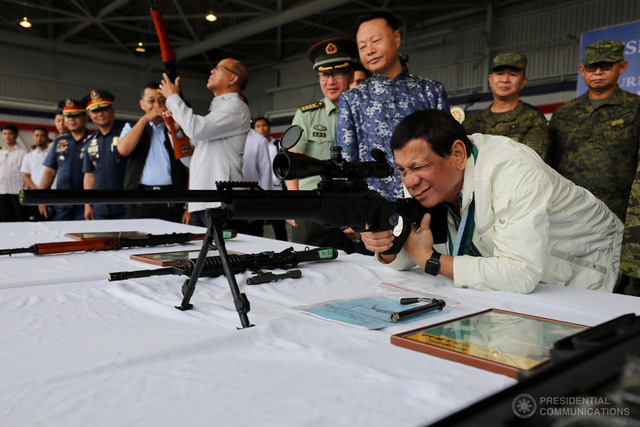 Đại sứ Trung Quốc tại Philippines Triệu Giám Hoa đã tham dự sự kiện bàn giao cùng ông Duterte vào thời điểm đó. Lô vũ khí lúc bấy giờ gồm 3.000 súng trường và 6 triệu viên đạn các loại.