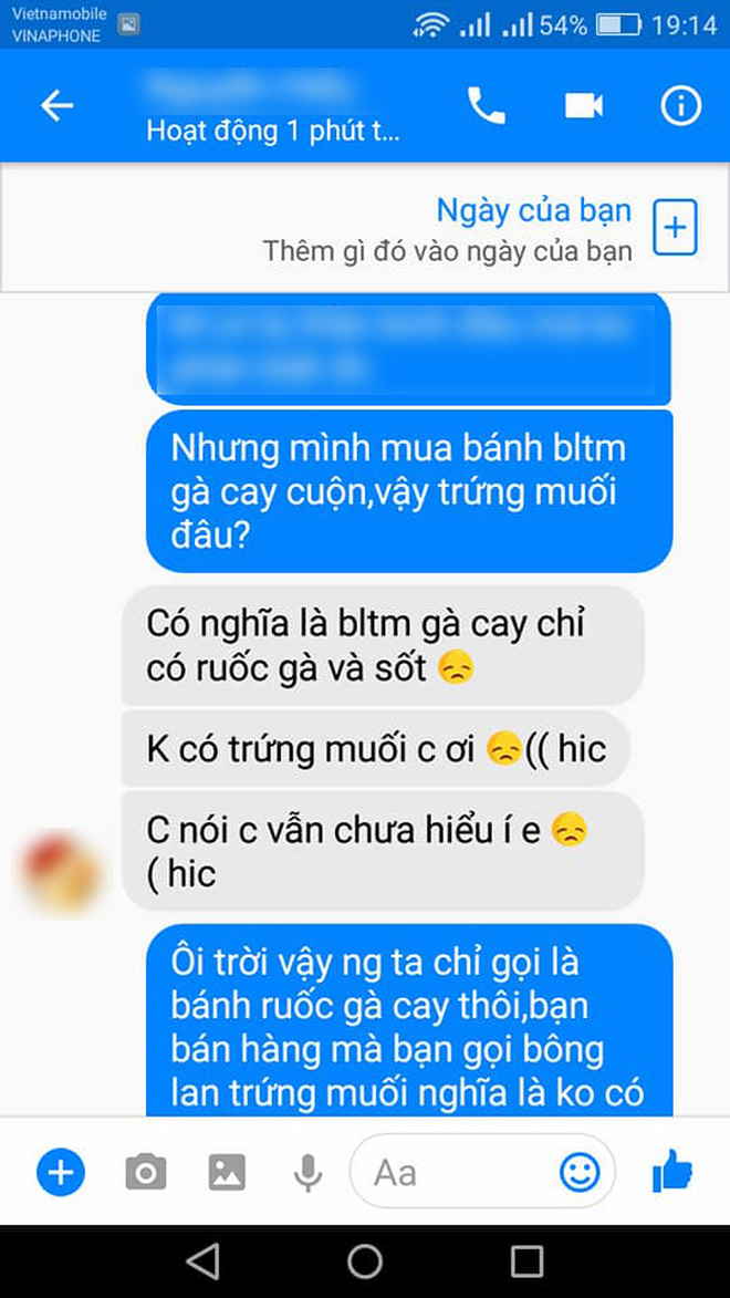 Khi được hỏi về cái tên kia thì người bán hàng mới chia sẻ thật lòng rằng: "Bên em gọi kia là bông lan trứng muối gà cay chị à!" Sau đó còn không quên khẳng định chắc nịch thêm rằng "Ai ăn người ta cũng gọi như vậy mà chị". Đến lúc thấy khách hàng "căng" quá và không còn biết nói gì để nghe hợp lí, người bán trong câu chuyện này mới xuống nước xin lỗi nhưng vẫn không quên tròng thêm câu "Dạ vâng mỗi người bán hàng gọi mỗi kiểu khác nhau chị à."