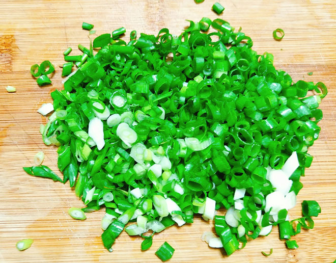 - Bước 2: Trong khi chờ cho thịt ngấm gia vị bạn làm tiếp các bước tiếp theo, hành lá rửa sạch rồi để cho khô ráo mới đem thái nhỏ, gừng cạo sạch vỏ rồi đập dập băm nhỏ.