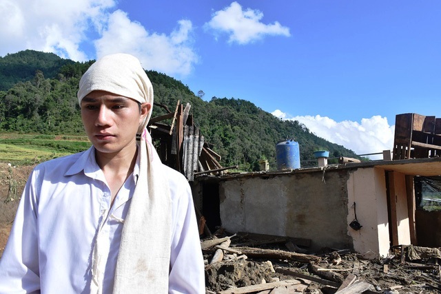 “Dừng lại trước căn nhà có bố, anh, chị và hai cháu sinh sống, tôi đứng tim trước khung cảnh đổ nát. Căn nhà chỉ như đống gỗ vụn và 5 người thân đã bị lũ cuốn trôi đi hết. Tôi chỉ biết đứng nhìn, cũng không thể khóc được,” nói tới đây, giọng Mường nghẹn lại, giọt nước mắt bắt đầu lăn dài.