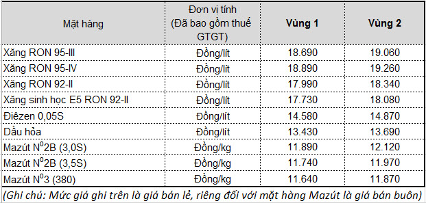 Petrolimex có 2 mức giá cho vùng 1 và vùng 2. Đối với các địa bàn xa cảng, xa kho đầu mối, xa cơ sở sản xuất xăng dầu theo quy định được Petrolimex gọi tắt là “Vùng 2”.