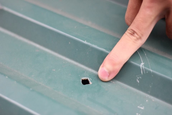 Nóc nhà dân bị đạn bắn xuyên qua.