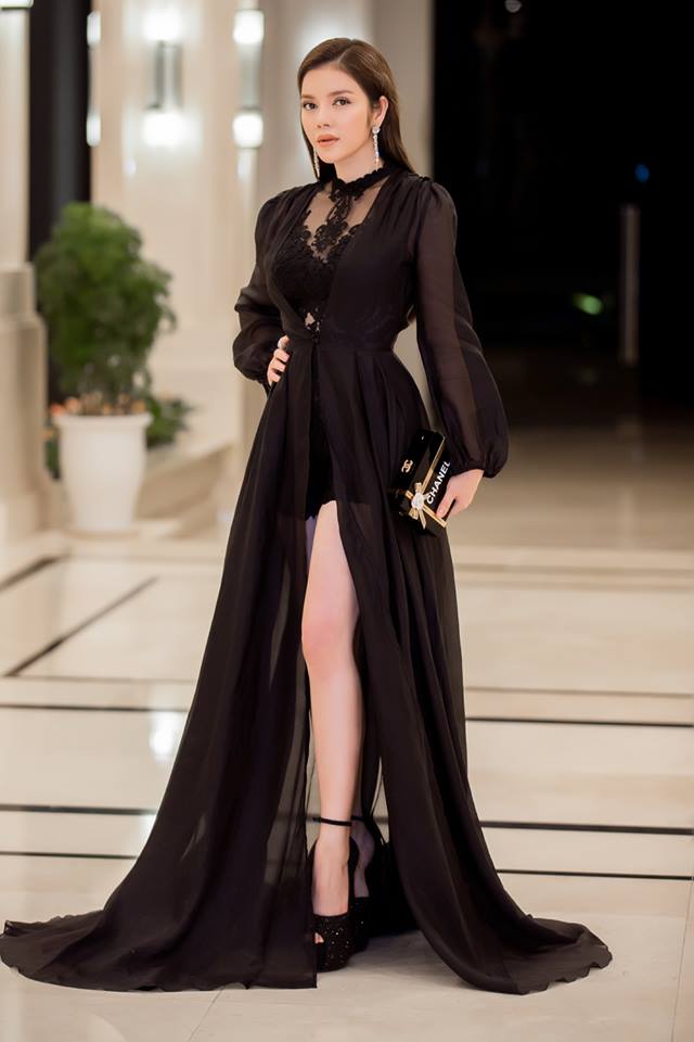 Diện chiếc váy được thiết kế xẻ cao khoe đôi đan thon dài, người đẹp Lý Nhã Kỳ "gây thương nhớ" khi cô giữ vai trò là giám khảo vòng thi sơ kết Miss Grand International 2017.