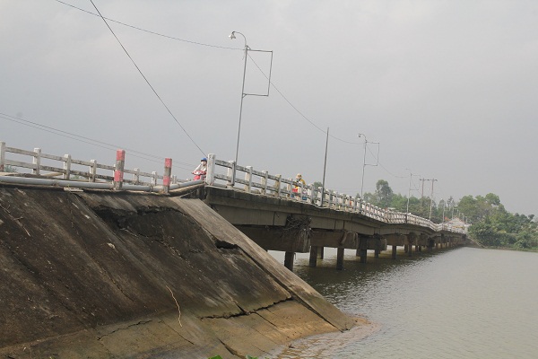 Ngoài ra, móng cầu ở phía thôn Hà Mỹ (xã Duy Vinh) xuất hiện một số vết nứt, các mảng bê tông bị sập.