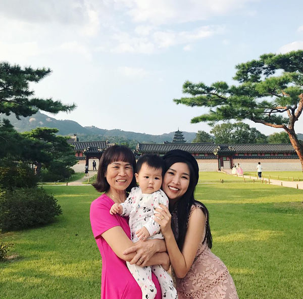 Phương Thùy và gia đình trong một chuyến du lịch.