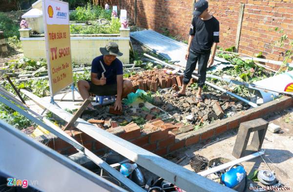 Còn anh Nguyễn Thành Trung, từ sáng sớm đã bắt tay ngay vào việc dựng lại ngôi nhà bị sập. “Chả còn gì nhiều, nhà sập, tài sản hư hại gần hết, may mắn nhất người vẫn không sao”, anh Trung nói và cho biết phải mất cả tháng mới khắc phục xong ngôi nhà.