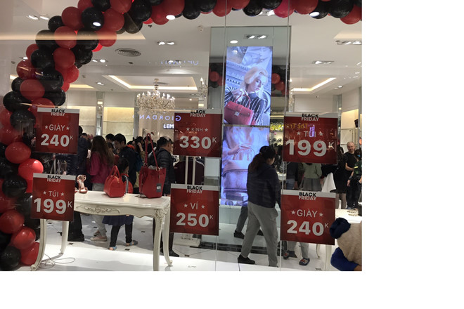 Năm nay, các trung tâm thương mại (TTTM) và những tuyến đường chuyên đồ thời trang ở hai thành phố lớn Hà Nội, TP.HCM đồng loạt quảng bá chương trình giảm giá ăn theo ngày Black Friday khá sớm. Thậm chí, ngay cả các cửa hàng bán vàng cũng có chương trình khuyến mãi nhân dịp này.