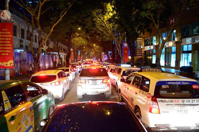 Khu vực Nhà thờ Đức Bà, đường Nguyễn Du, Đồng Khởi, Lý Tự Trọng, Lê Thánh Tôn ôtô xếp hàng dài, nhích từng chút một. Từ giao lộ Nguyễn Du - Đồng Khởi đến Vincom và Parkson ngay giao lộ Lê Thánh Tôn - Đồng Khởi chưa đầy 100 m nhưng phải mất hơn 15 phút các "tín đồ mua sắm" vẫn chưa thể bước đến cổng 2 trung tâm mua sắm lớn trên tuyến đường này.