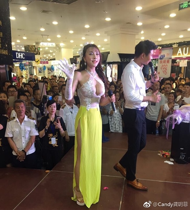 H́nh ảnh gần đây của Can Lộ Lộ khi đi hát sự kiện hội chợ