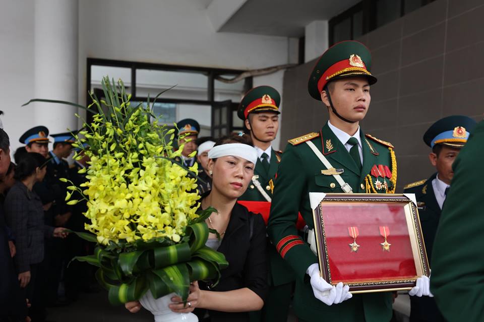 Đầu giờ chiều nay 6/12, tang lễ của Thiếu tá Nguyễn Thành Trung được tổ chức long trọng tại quê nhà. Nhiều người không cầm được nước mắt khi chứng kiến mẹ Thiếu tá phi công Nguyễn Thành Trung liên tục ngất lịm. Xót xa cho vợ anh mới ngoài 20 tuổi, đang mang thai đứa con thứ hai đã góa chồng và chưa có việc làm.