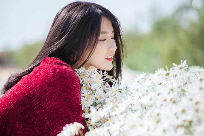 Vẻ đẹp của thiếu nữ tuổi xuân hòa cùng vẻ đẹp của loài hoa nhỏ tạo nên hình ảnh say lòng người.