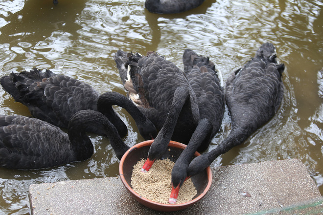 Ông Giáp cũng cho biết thêm thức ăn dành cho loài thiên nga rất đơn giản, là thóc lúa, ngô và các loại hạt ngũ cốc khác...