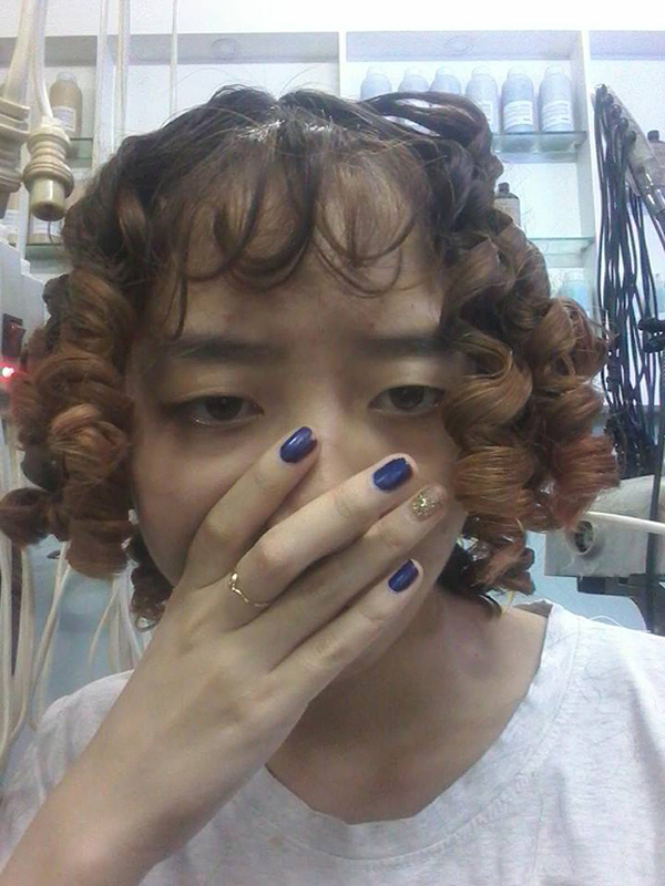 Cô gái muốn làm xoăn lọn to cơ mà đâu phải xù, lôi thôi như thế này, còn tâm trí đâu mà hẹn hò, gặp mặt bạn bè nữa đây.