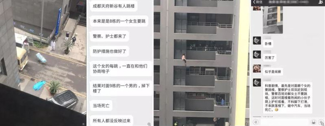 Không lâu sau, một đoạn nhắn tin được lan truyền trên mạng khẳng định, anh chàng đứng ở tỏa nhà đối diện đã bất cẩn sảy chân ngã xuống trong lúc mải đứng theo dõi câu chuyện của cô gái có ý định nhảy lầu.